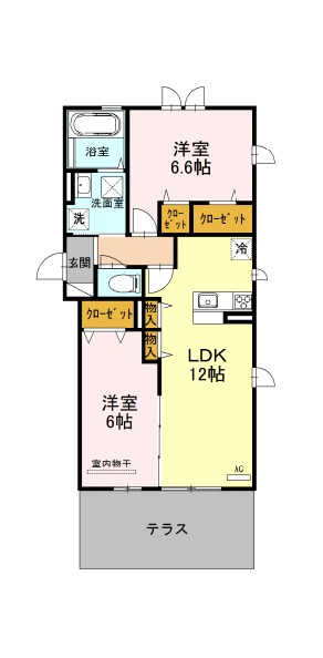 | 間取り詳細 | LDK 12畳 、 洋室 6.6畳 、 洋室 6畳 |