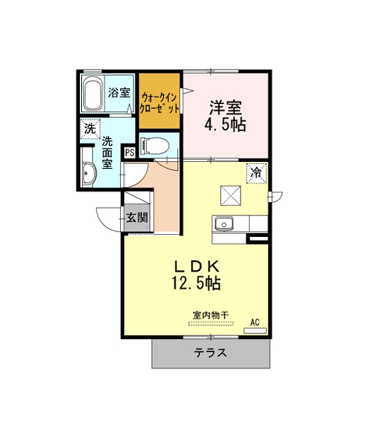 | 間取り詳細 | LDK 12.5畳 、 洋室 4.5畳 |