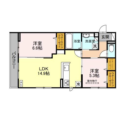 | 間取り詳細 | LDK 14.9畳 、 洋室 6.6畳 、 洋室 5.3畳 |