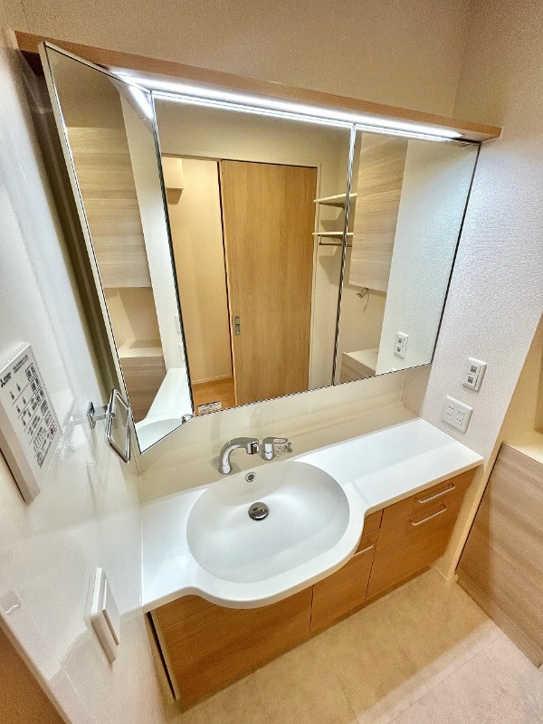 | 設備 | ガス(都市ガス)、インターホン(TVモニター付き)、防犯カメラ、オートロック、専用ゴミ置き場(あり)、駐輪場、日当り良好、通風良好、フローリング、全居室フローリング、クッションフロア、照明器具、ベランダ・バルコニー、ウォークインクローゼット、ウォークインクローゼット数(3)、下駄箱、シャワー、追い焚き、浴室乾燥機、脱衣所、給湯、ウォシュレット、洗面台、洗面所独立、シャンプードレッサー、洗面所にドア、洗濯機置き場(室内)、コンロ設置済、コンロ口数(3)、コンロ種類(都市ガス)、グリル、システムキッチン、カウンターキッチン、エアコン、エアコン台数(1)、24H換気システム、インターネット使用料無料 | ||
