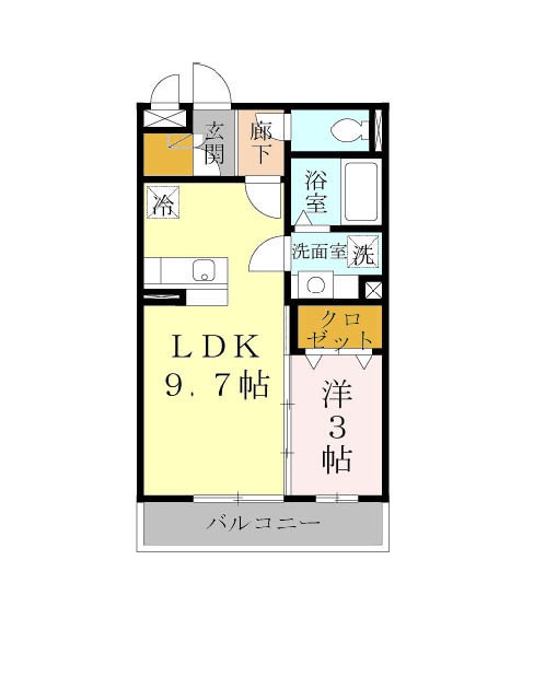 | 間取り詳細 | LDK 9.7畳 、 洋室 3畳 |