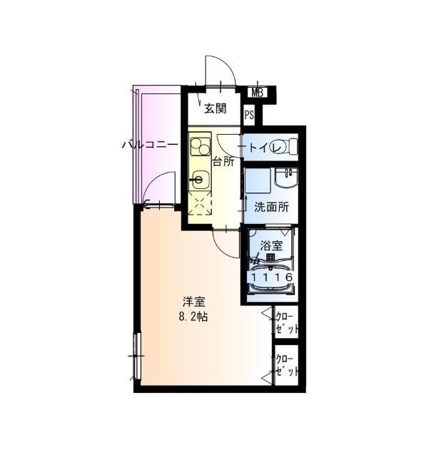 | 間取り詳細 | K 2.5畳 、 洋室 8.2畳 |