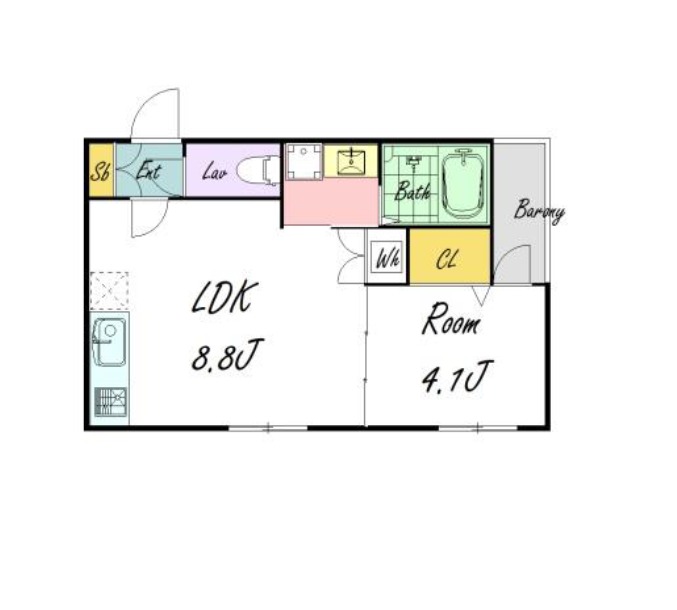 | 間取り詳細 | LDK 8.8畳 、 洋室 4.1畳 |