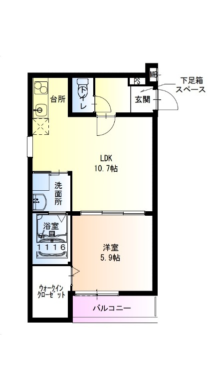 | 間取り詳細 | LDK 10.7畳 、 洋室 5.9畳 |