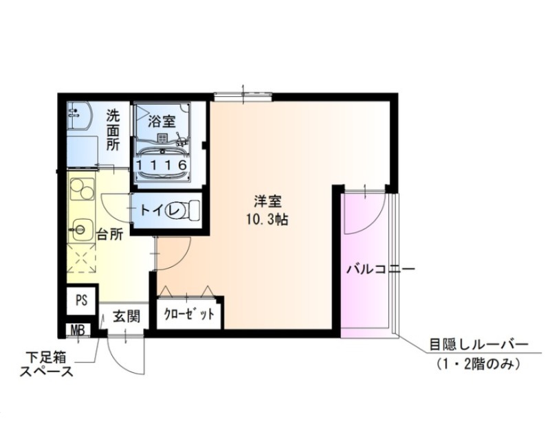 | 間取り詳細 | 洋室 10.3畳 、 K 2.5畳 |