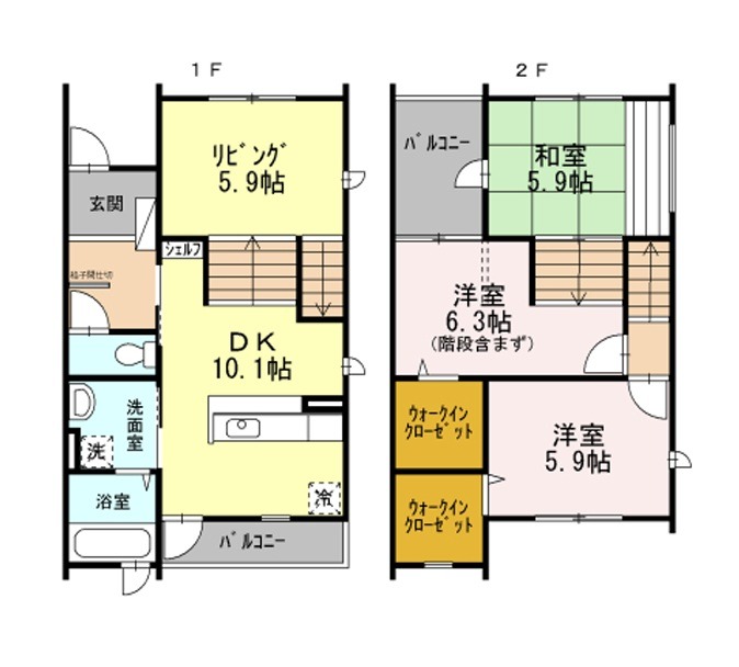 洋室 6.3畳 洋室 5.9畳 和室 5.9畳 洋室 5.9畳 |