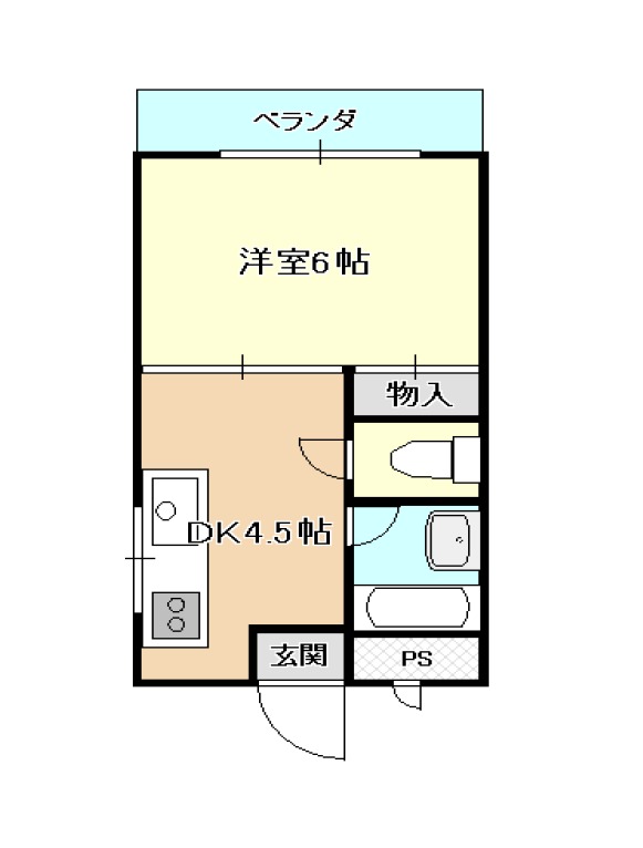 | 間取り詳細 | DK 4.5畳 、 洋室 6畳 |