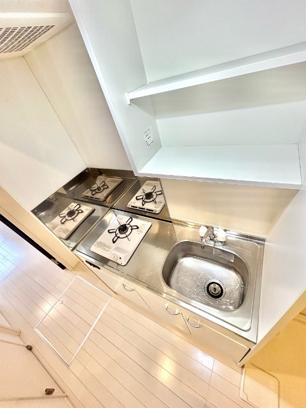 | 設備 | ガス(プロパン)、インターホン(TVモニター付き)、専用ゴミ置き場(あり)、駐輪場、日当り良好、角部屋、通風良好、フローリング、全居室フローリング、クッションフロア、照明器具、ベランダ・バルコニー、クローゼット、クローゼット数(1)、下駄箱、バス・トイレ別(別室)、シャワー、給湯、洗面台、洗濯機置き場(室内)、コンロ設置可、コンロ口数(1)、コンロ種類(プロパン)、エアコン、24H換気システム | ||