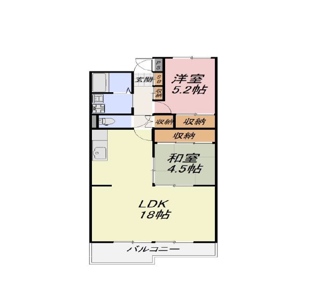 洋室 5.2畳 和室 4.5畳 |