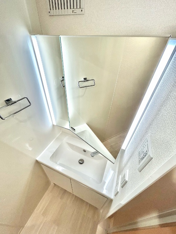 | 設備 | ガス(都市ガス)、インターホン(TVモニター付き)、防犯カメラ、オートロック、宅配ボックス、専用ゴミ置き場(あり)、駐輪場、通風良好、フローリング、全居室フローリング、クッションフロア、照明器具、ベランダ・バルコニー、シャッター雨戸(手動)、クローゼット、クローゼット数(1)、ウォークインクローゼット、ウォークインクローゼット数(1)、下駄箱、バス・トイレ別(別室)、シャワー、追い焚き、浴室乾燥機、脱衣所、給湯、ウォシュレット、ウォームレット、洗面台、洗面所独立、シャンプードレッサー、洗濯機置き場(室内)、コンロ設置済、コンロ口数(3)、グリル、システムキッチン、カウンターキッチン、エアコン、エアコン台数(3)、24H換気システム、CATV、インターネット使用料無料 | ||