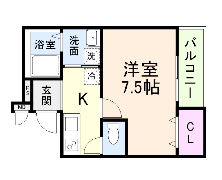 | 間取り詳細 | K 2.5畳 、 洋室 7.5畳 |