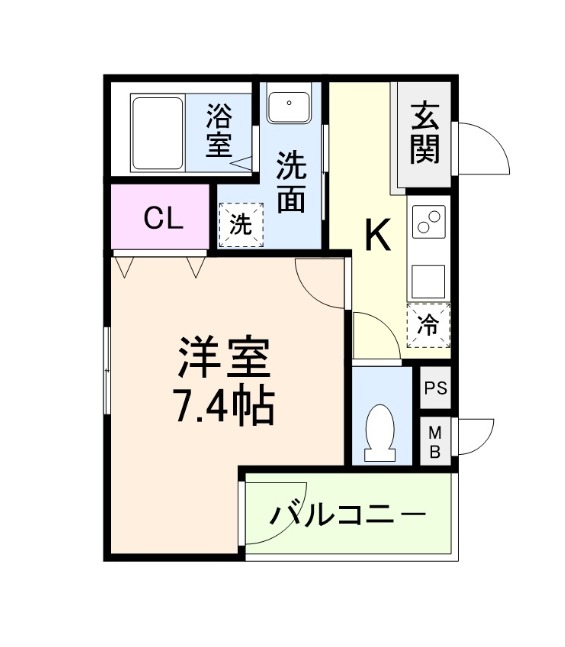 | 間取り詳細 | K 2.5畳 、 洋室 7.4畳 |