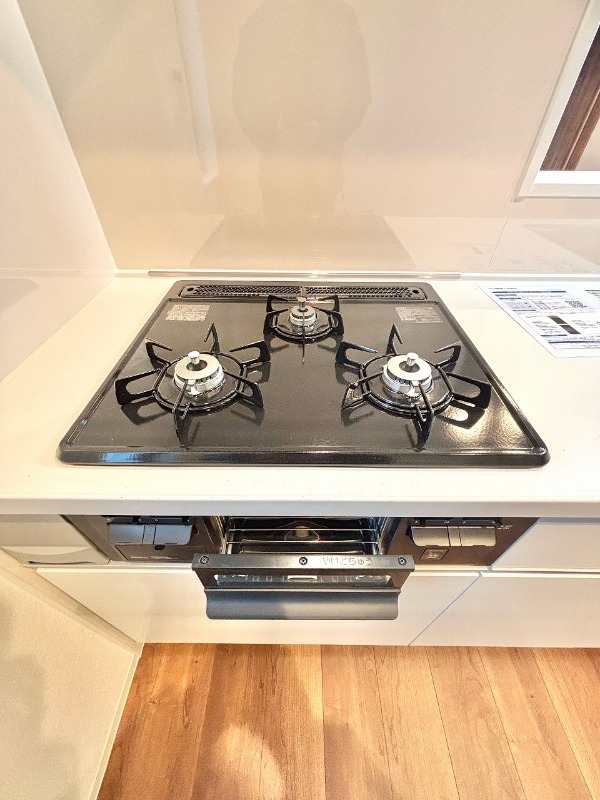| 設備 | インターホン(TVモニター付き)、防犯カメラ、宅配ボックス、専用ゴミ置き場(あり)、駐輪場、バイク置き場、日当り良好、通風良好、フローリング、全居室フローリング、クッションフロア、照明器具、ベランダ・バルコニー、クローゼット、クローゼット数(2)、下駄箱、バス・トイレ別(別室)、シャワー、浴室乾燥機、脱衣所、給湯、ウォシュレット、ウォームレット、洗面台、洗面所独立、シャンプードレッサー、洗濯機置き場(室内)、コンロ設置済、コンロ口数(3)、グリル、システムキッチン、カウンターキッチン、エアコン、エアコン台数(1)、24H換気システム、インターネット使用料無料 | ||