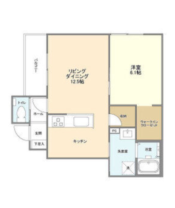 | 間取り詳細 | LDK 12.5畳 、 洋室 6.1畳 |