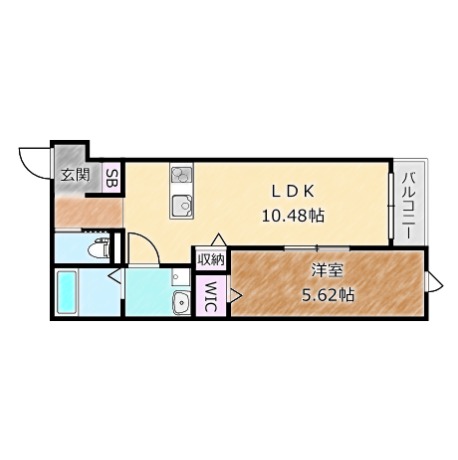 | 間取り詳細 | LDK 10.48畳 、 洋室 5.62畳 |