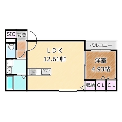 | 間取り詳細 | LDK 12.61畳 、 洋室 4.93畳 |