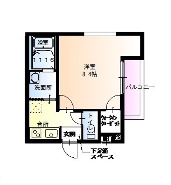 | 間取り詳細 | 洋室 8.4畳 、 K 2.5畳 |