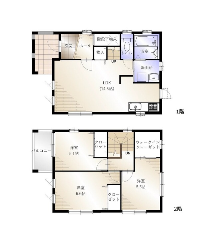 | 間取り詳細 | LDK 14.5畳 、 洋室 6.6畳 、 洋室 5.6畳 、 洋室 5.1畳 |