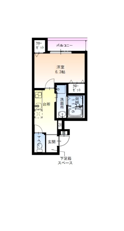 | 間取り詳細 | K 2.5畳 、 洋室 6.3畳 |