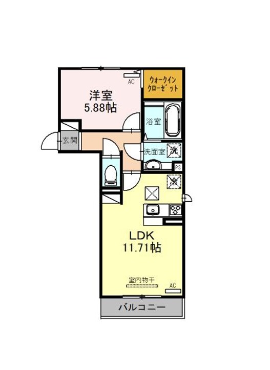 | 間取り詳細 | LDK 11.71畳 、 洋室 5.88畳 |