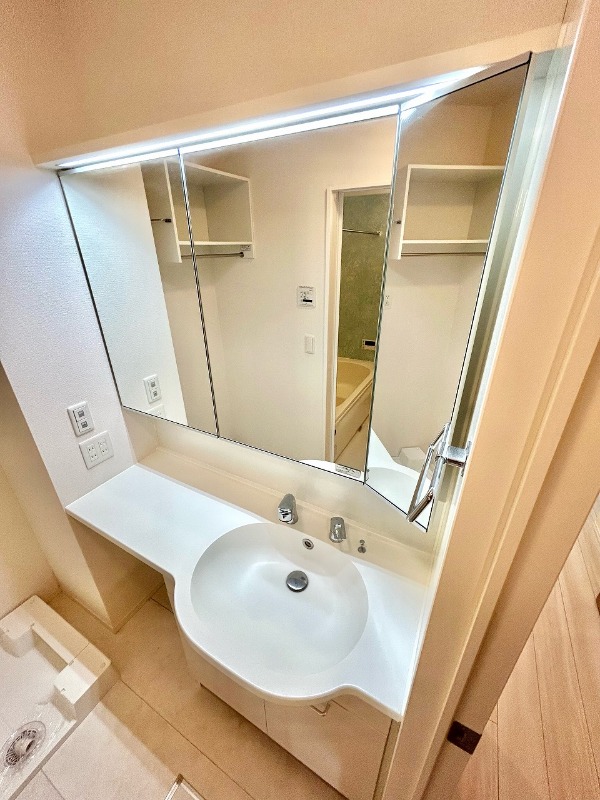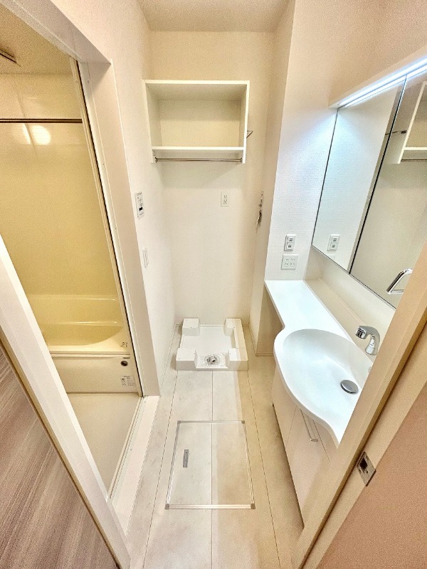 | 設備 | ガス(都市ガス)、インターホン(TVモニター付き)、カードキー、オートロック、宅配ボックス、専用ゴミ置き場(あり)、駐輪場、通風良好、フローリング、全居室フローリング、クッションフロア、ベッド付、ベランダ・バルコニー、ウォークインクローゼット、ウォークインクローゼット数(1)、下駄箱、バス・トイレ別(別室)、シャワー、追い焚き、浴室乾燥機、脱衣所、給湯、ウォシュレット、ウォームレット、洗面台、洗面所独立、シャンプードレッサー、洗濯機置き場(室内)、コンロ設置済、コンロ口数(3)、コンロ種類(都市ガス)、グリル、システムキッチン、カウンターキッチン、エアコン、エアコン台数(2)、24H換気システム、CATV、インターネット使用料無料 | ||