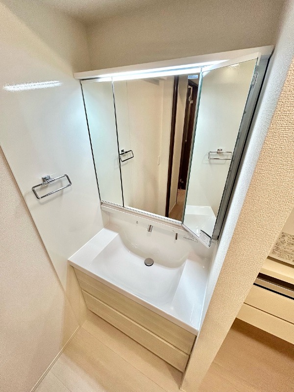 | 設備 | ガス(都市ガス)、インターホン(TVモニター付き)、防犯カメラ、オートロック、専用ゴミ置き場(あり)、駐輪場、通風良好、フローリング、全居室フローリング、クッションフロア、照明器具、ベランダ・バルコニー、L字型バルコニー、ウォークインクローゼット、ウォークインクローゼット数(2)、下駄箱、バス・トイレ別(別室)、シャワー、追い焚き、浴室乾燥機、脱衣所、給湯、ウォシュレット、ウォームレット、洗面台、洗面所独立、シャンプードレッサー、洗濯機置き場(室内)、コンロ設置済、コンロ口数(3)、コンロ種類(都市ガス)、グリル、システムキッチン、カウンターキッチン、エアコン、エアコン台数(3)、24H換気システム、CATV、インターネット使用料無料 | ||
