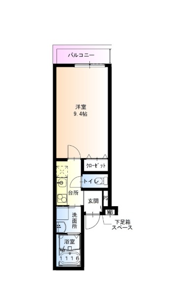 | 間取り詳細 | 洋室 9.4畳 、 K 2.5畳 |