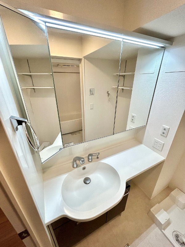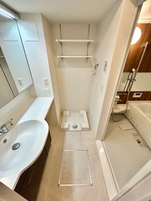 | 設備 | ガス(都市ガス)、インターホン(TVモニター付き)、オートロック、宅配ボックス、専用ゴミ置き場(あり)、駐輪場、通風良好、フローリング、全居室フローリング、クッションフロア、ベランダ・バルコニー、クローゼット、クローゼット数(2)、ウォークインクローゼット、ウォークインクローゼット数(2)、下駄箱、バス・トイレ別(別室)、シャワー、追い焚き、脱衣所、給湯、ウォシュレット、ウォームレット、洗面台、洗面所独立、シャンプードレッサー、洗濯機置き場(室内)、コンロ設置済、コンロ口数(3)、コンロ種類(都市ガス)、グリル、システムキッチン、カウンターキッチン、24H換気システム | ||