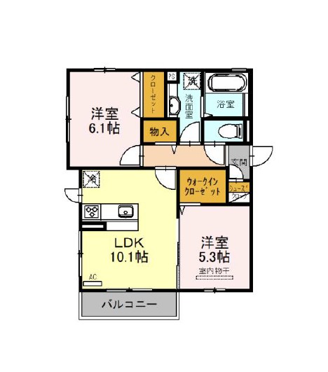 | 間取り詳細 | LDK 10.1畳 、 洋室 6.1畳 、 洋室 5.3畳 |