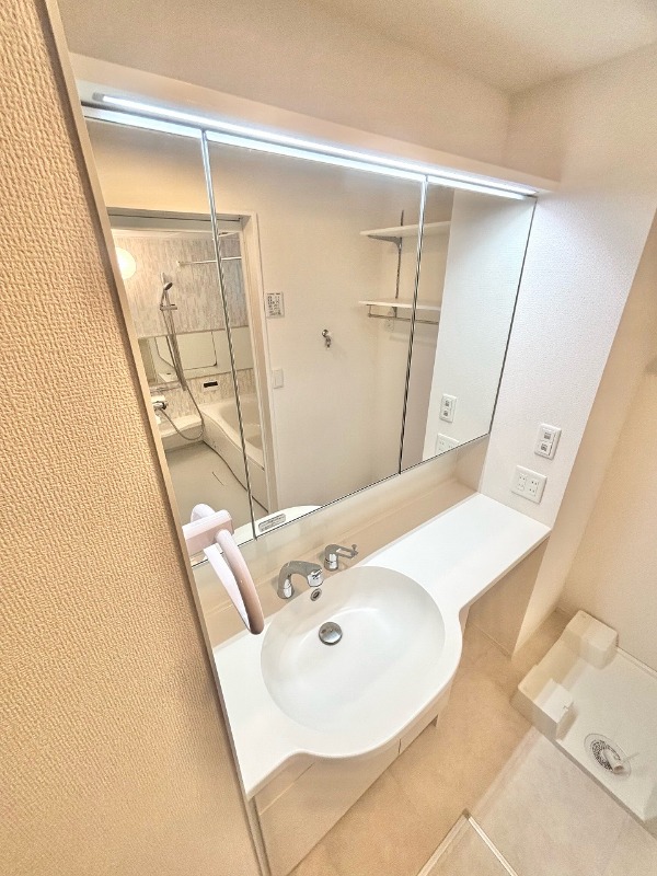 | 設備 | ガス(都市ガス)、インターホン(TVモニター付き)、防犯カメラ、カードキー、オートロック、宅配ボックス、専用ゴミ置き場(あり)、駐輪場、通風良好、フローリング、全居室フローリング、クッションフロア、ベランダ・バルコニー、シャッター雨戸(手動)、クローゼット、クローゼット数(1)、ウォークインクローゼット、ウォークインクローゼット数(1)、下駄箱、バス・トイレ別(別室)、シャワー、追い焚き、浴室乾燥機、脱衣所、給湯、ウォシュレット、ウォームレット、洗面台、洗面所独立、シャンプードレッサー、洗濯機置き場(室内)、コンロ設置済、コンロ口数(3)、コンロ種類(都市ガス)、グリル、システムキッチン、カウンターキッチン、エアコン、エアコン台数(1)、24H換気システム、CATV、インターネット使用料無料 | ||
