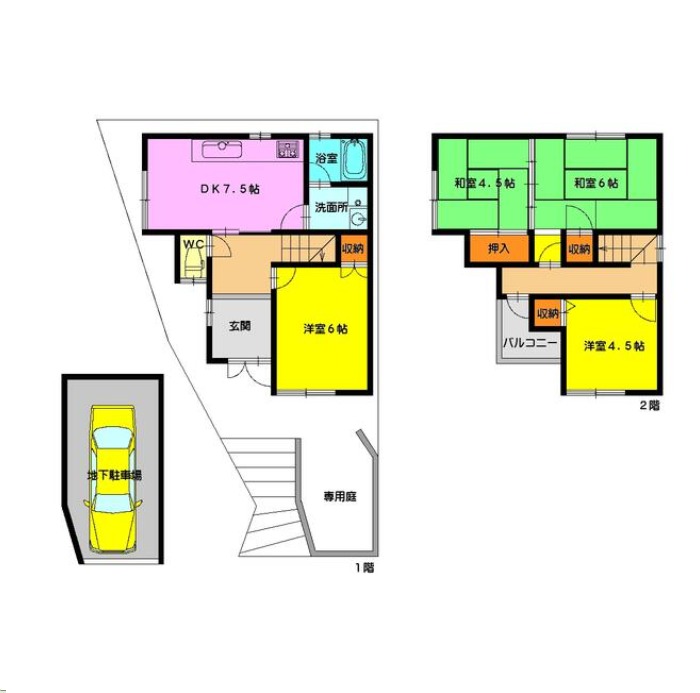 | 間取り詳細 | DK 7.5畳 、 洋室 6畳 、 和室 6畳 、 洋室 4.5畳 、 和室 4.5畳 |