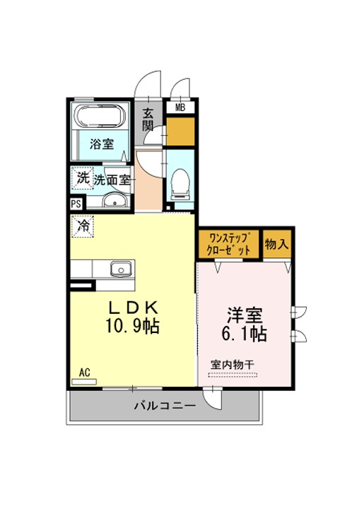 | 間取り詳細 | LDK 10.9畳 、 洋室 6.1畳 |