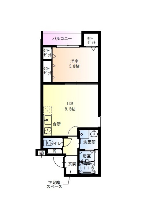 | 間取り詳細 | LDK 9.5畳 、 洋室 5.8畳 |