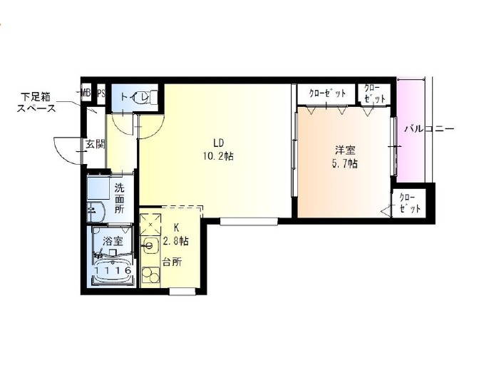 | 間取り詳細 | LDK 13畳 、 洋室 5.7畳 |