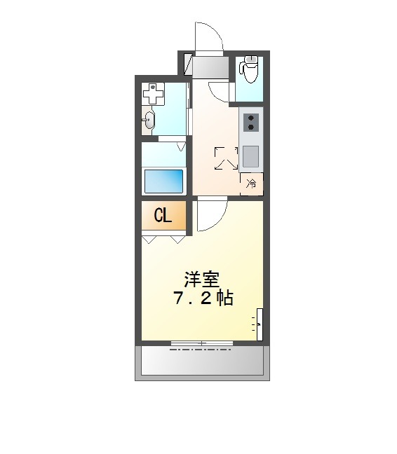 | 間取り詳細 | 洋室 7.2畳 、 K 2.5畳 |