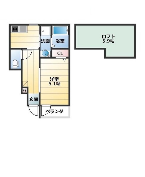 | ワンルーム | 洋室 5.1畳 | 24.96㎡ |