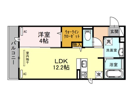 | 間取り詳細 | LDK 12.2畳 、 洋室 4畳 |