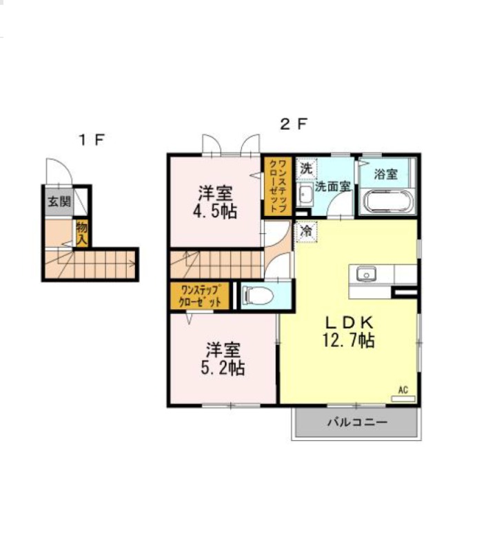 | 間取り詳細 | LDK 12.7畳 、 洋室 5.2畳 、 洋室 4.5畳 |