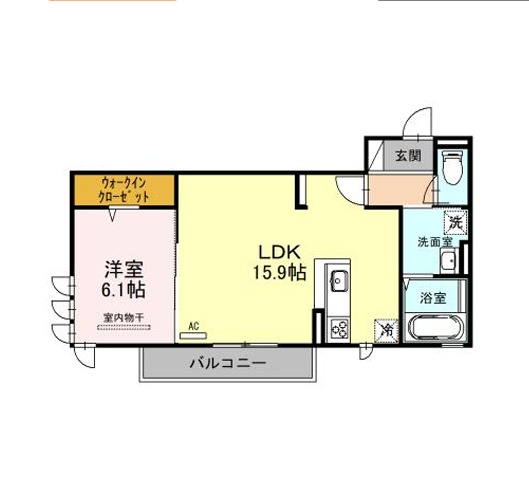 | 間取り詳細 | LDK 15.9畳 、 洋室 6.1畳 |