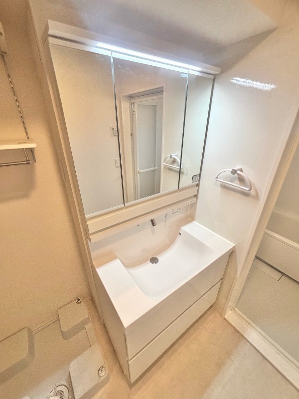 | 設備 | オール電化、インターホン(TVモニター付き)、オートロック、宅配ボックス、専用ゴミ置き場(あり)、駐輪場、通風良好、フローリング、全居室フローリング、クッションフロア、ベランダ・バルコニー、ウォークインクローゼット、ウォークインクローゼット数(1)、下駄箱、バス・トイレ別(別室)、シャワー、追い焚き、浴室乾燥機、脱衣所、給湯、ウォシュレット、ウォームレット、洗面台、洗面所独立、シャンプードレッサー、洗濯機置き場(室内)、コンロ設置済、コンロ口数(3)、コンロ種類(IH)、グリル、システムキッチン、カウンターキッチン、エアコン、エアコン台数(1)、24H換気システム、CATV、インターネット使用料無料 | ||