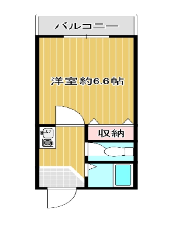| 間取り詳細 | K 2.5畳 、 洋室 6.6畳 |