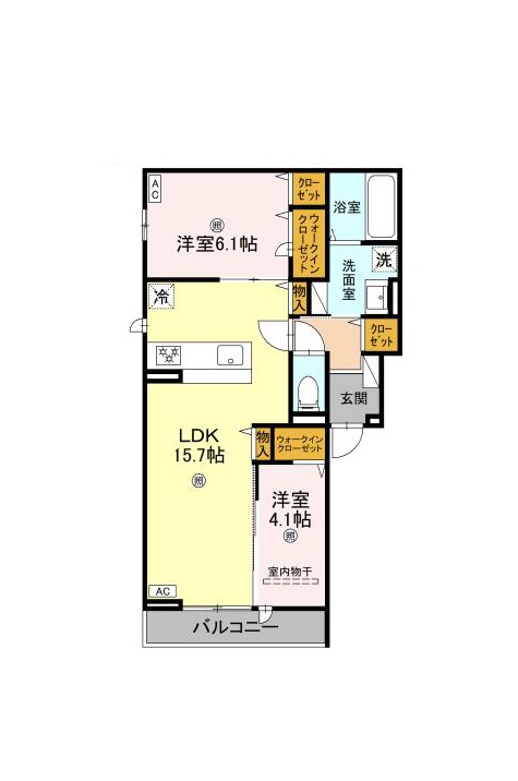 | 間取り詳細 | LDK 15.7畳 、 洋室 6.1畳 、 洋室 4.1畳 |