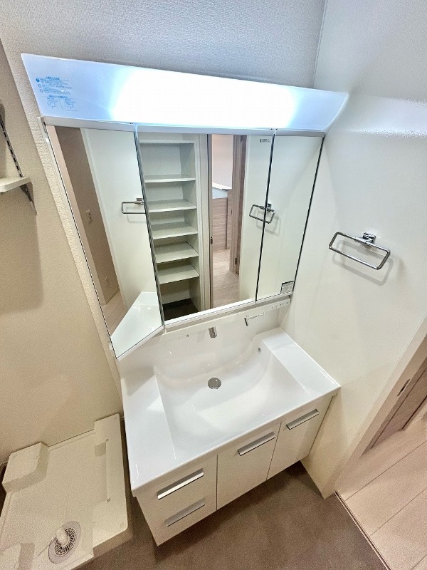 | 設備 | ガス(都市ガス)、インターホン(TVモニター付き)、防犯カメラ、オートロック、専用ゴミ置き場(あり)、駐輪場、日当り良好、通風良好、フローリング、全居室フローリング、クッションフロア、照明器具、ベランダ・バルコニー、クローゼット、クローゼット数(3)、ウォークインクローゼット、ウォークインクローゼット数(2)、バス・トイレ別(別室)、シャワー、追い焚き、浴室乾燥機、脱衣所、給湯、ウォシュレット、洗面台、洗面所独立、シャンプードレッサー、コンロ設置済、コンロ口数(3)、コンロ種類(都市ガス)、グリル、システムキッチン、カウンターキッチン、エアコン、エアコン台数(2)、24H換気システム、CATV、インターネット使用料無料 | ||