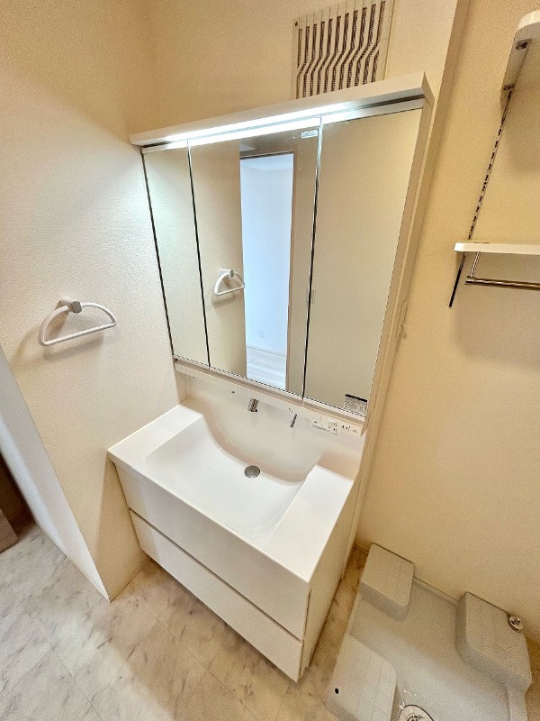 | 設備 | ガス(都市ガス)、インターホン(TVモニター付き)、カードキー、オートロック、専用ゴミ置き場(あり)、駐輪場、日当り良好、通風良好、フローリング、全居室フローリング、クッションフロア、照明器具、ベランダ・バルコニー、2面バルコニー、ウォークインクローゼット、ウォークインクローゼット数(2)、下駄箱、バス・トイレ別(別室)、シャワー、追い焚き、脱衣所、給湯、ウォシュレット、洗面台、洗面所独立、シャンプードレッサー、洗面所にドア、洗濯機置き場(室内)、コンロ設置済、コンロ口数(3)、コンロ種類(都市ガス)、グリル、システムキッチン、カウンターキッチン、エアコン、エアコン台数(1)、24H換気システム、CATV、インターネット使用料無料 | ||