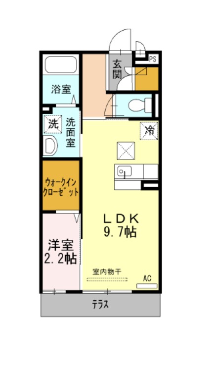 | 間取り詳細 | LDK 9.7畳 、 洋室 2.2畳 |