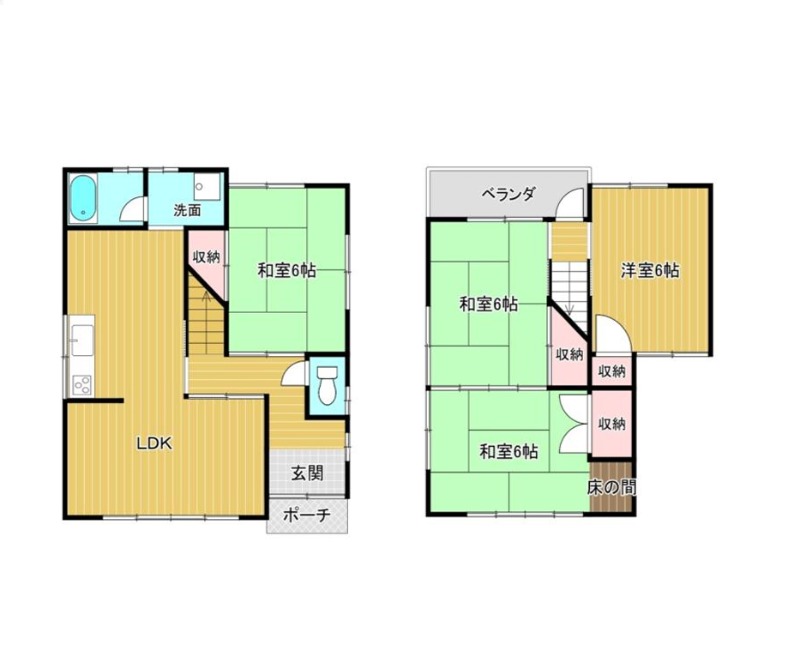 和室 6畳 和室 6畳 和室 6畳 洋室 6畳 |
