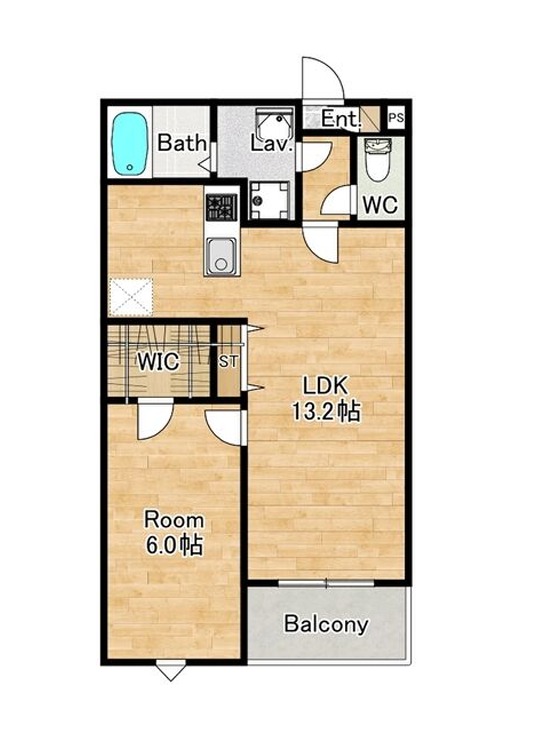 | 間取り詳細 | LDK 13.2畳 、 洋室 6畳 |