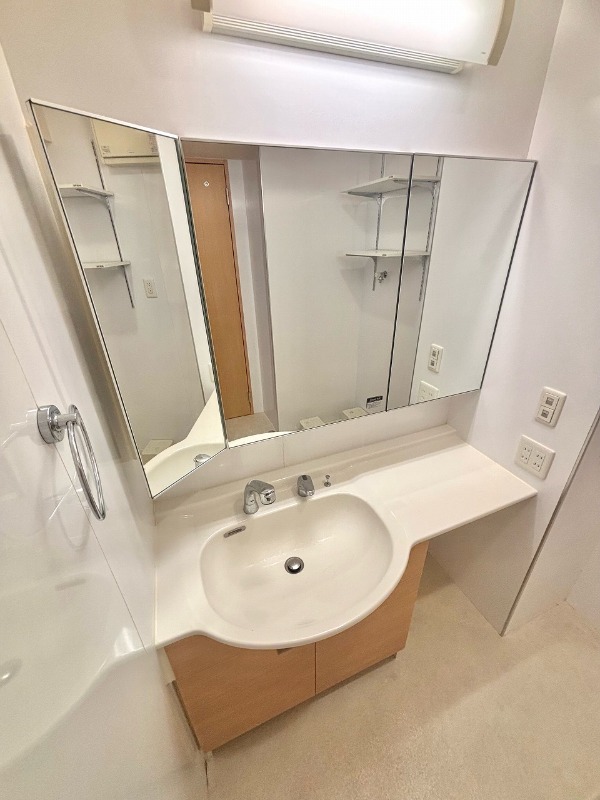 | 設備 | ガス(都市ガス)、インターホン(TVモニター付き)、専用ゴミ置き場(あり)、駐輪場、日当り良好、通風良好、フローリング、全居室フローリング、クッションフロア、間接照明、ベランダ・バルコニー、ウォークインクローゼット、ウォークインクローゼット数(1)、下駄箱、バス・トイレ別(別室)、シャワー、追い焚き、浴室乾燥機、脱衣所、給湯、ウォシュレット、ウォームレット、洗面台、洗面所独立、シャンプードレッサー、洗濯機置き場(室内)、コンロ設置済、コンロ口数(3)、コンロ種類(都市ガス)、グリル、システムキッチン、カウンターキッチン、エアコン、エアコン台数(1)、24H換気システム、CATV、インターネット使用料無料 | ||