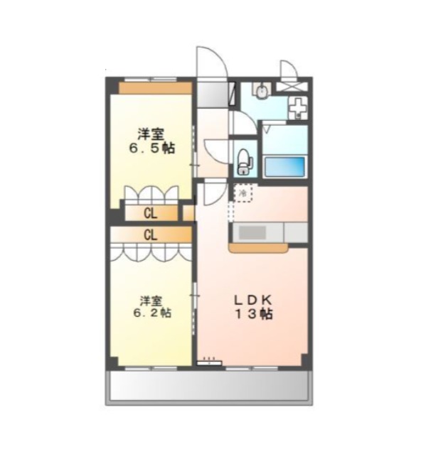| 間取り詳細 | LDK 13畳 、 洋室 6.5畳 、 洋室 6.2畳 |