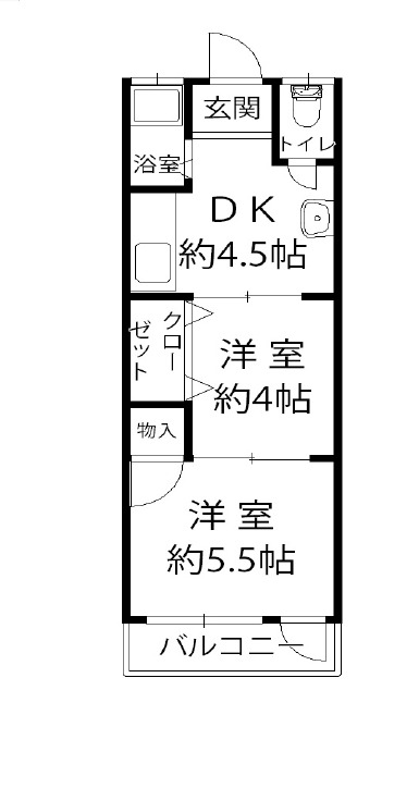 | 間取り詳細 | DK 4.5畳 、 洋室 4畳 、 洋室 5.5畳 |